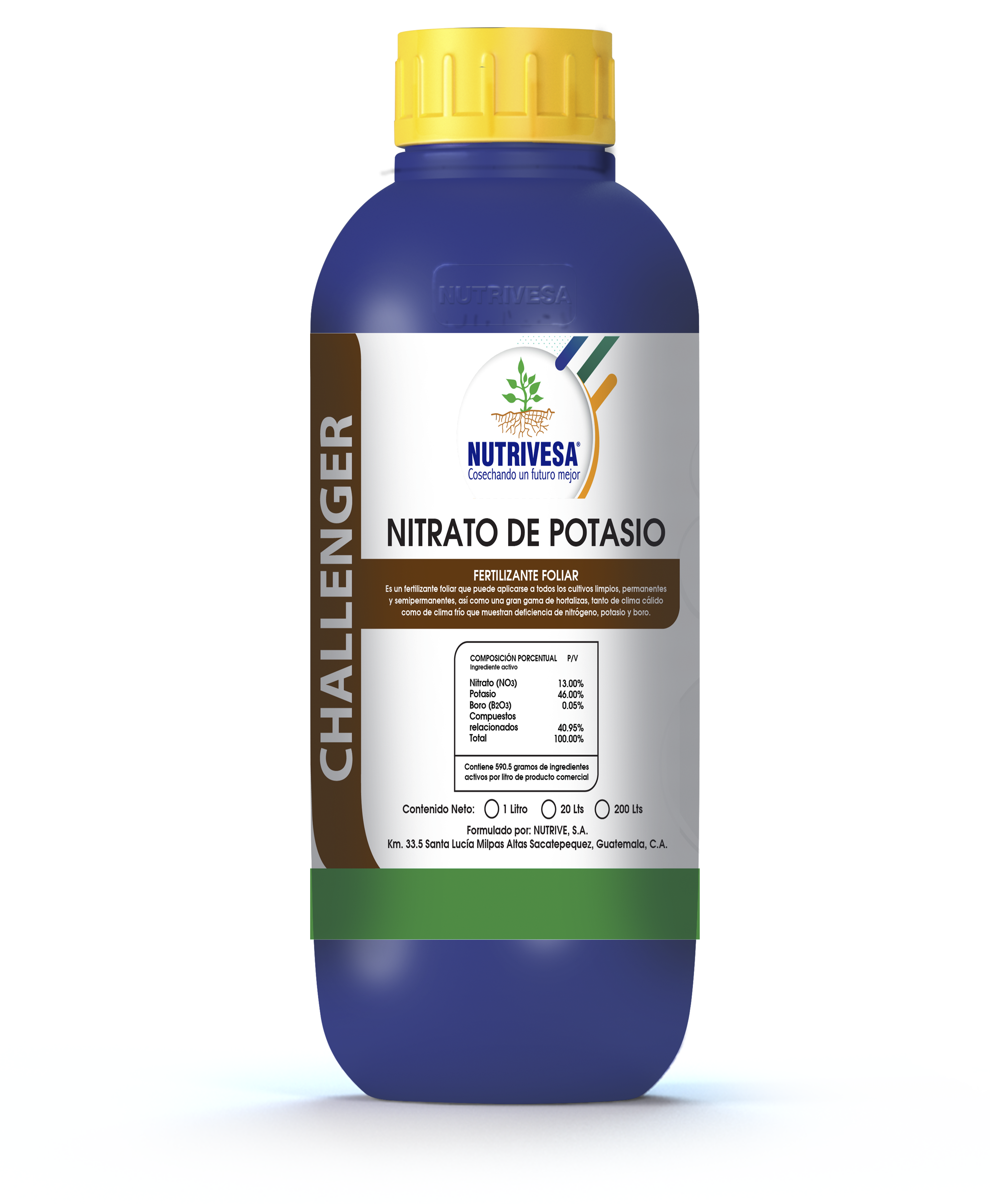 NITRATO DE POTASIO: Es un fertilizante foliar que puede aplicarse a todos los cultivos limpios, permanentes y semipermanentes, así como una gran gama de hortalizas.