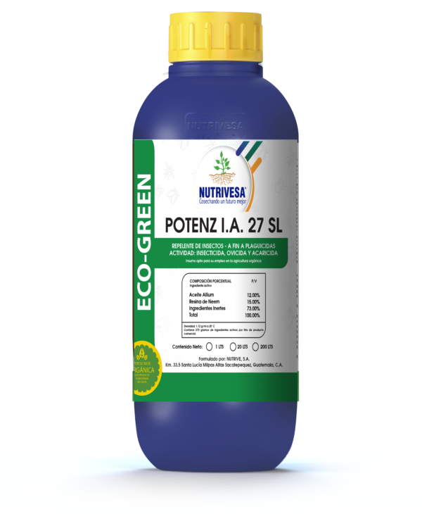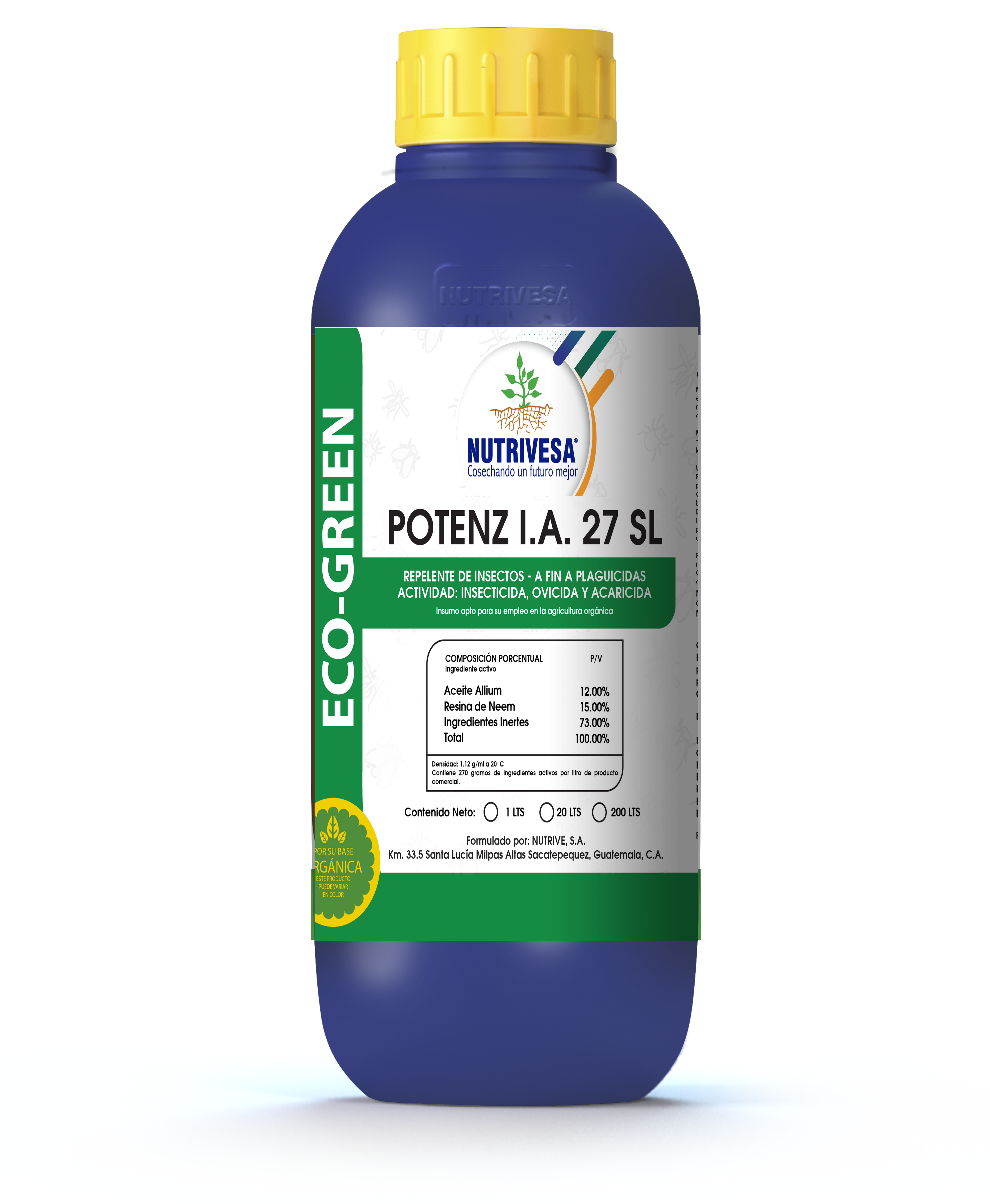 POTENZ I.A. es un insecticida y acaricida con principios activos de origen natural, Es un potente ovicida al alterar la cutícula de las células expone los organismos al medio provocando su destrucción.